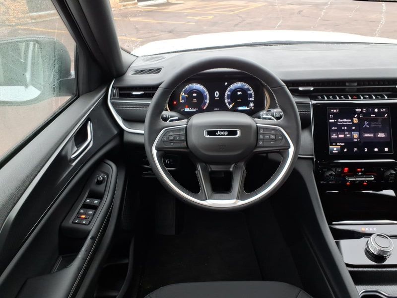 Inside, the cabin balances comfort and convenience with heated front seats, a heated steering wheel, power driver seating, and dual-zone automatic climate control. Wireless charging, steering wheel-mounted audio controls, and Uconnect® 5 with an 8.4-inch display keep drivers connected, while Luxury Tech Group I enhances the cabin with advanced safety and convenience features.