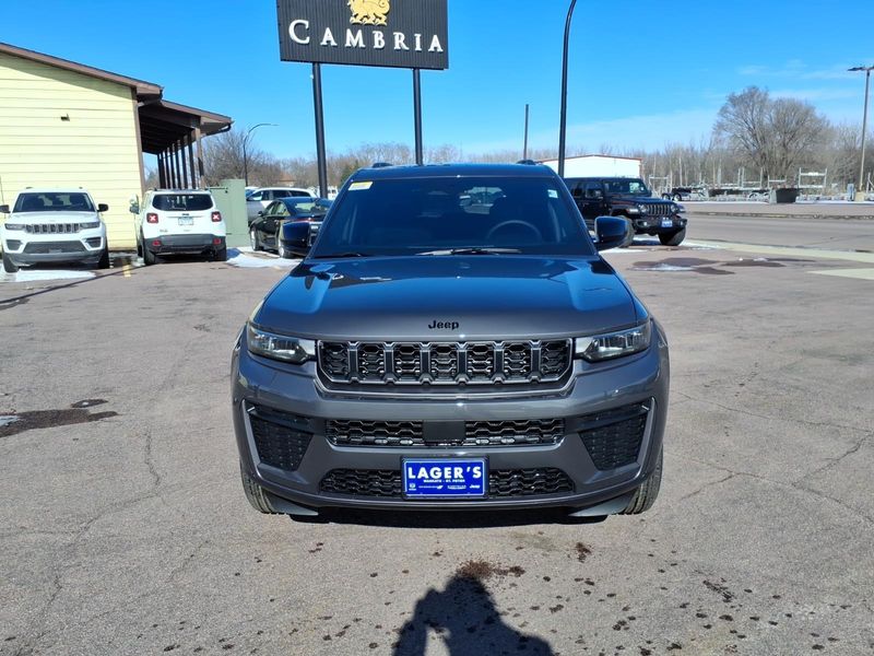 The 2026 Jeep Grand Cherokee Laredo 4WD combines refined design, advanced technology, and legendary Jeep® capability in a versatile full-size SUV. Finished in Baltic Gray Metallic Clearcoat with the Laredo Altitude Appearance Package, this SUV features dark neutral metallic exterior accents, dual exhaust tips, and 18-inch fully painted aluminum wheels for a sleek, modern look.